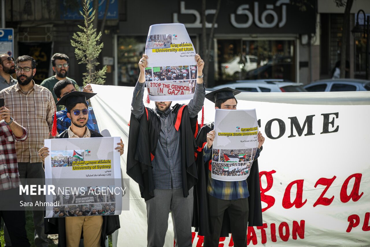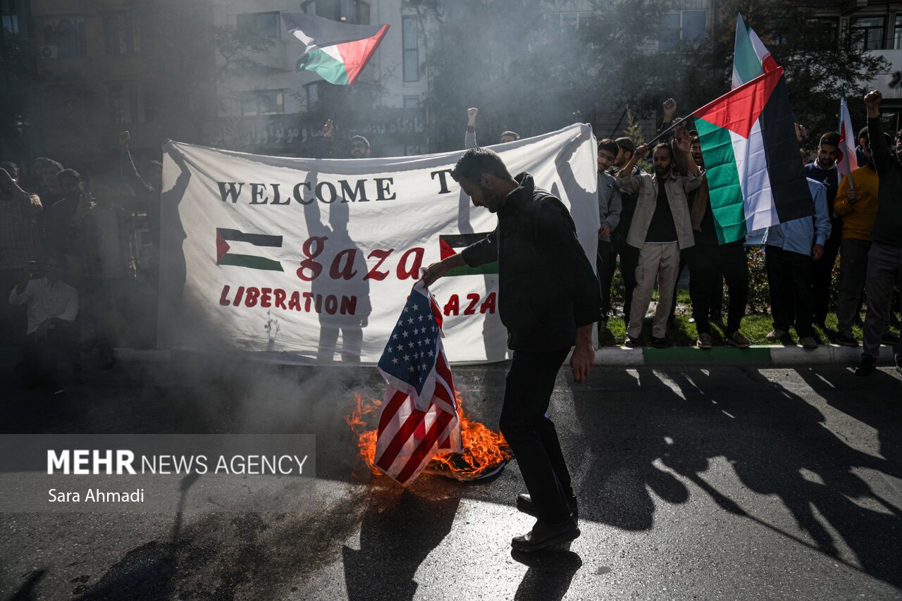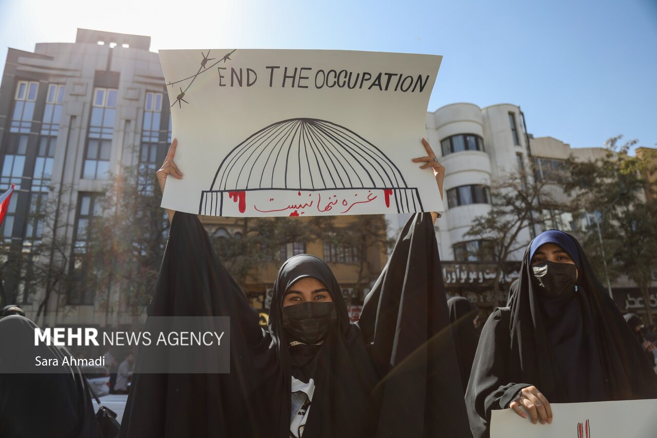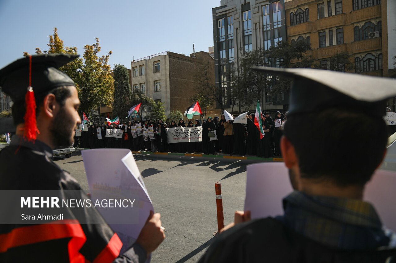 همزمان با دومین سالگرد عملیات «طوفان الاقصی»، جمعی از دانشجویان مشهدی روز چهارشنبه با تجمع در برابر دفتر نمایندگی سازمان ملل در این شهر، حمایت خود را از مردم مظلوم فلسطین اعلام و جنایات رژیم صهیونیستی را محکوم کردند. در این مراسم «ناصر ابوشریف»، نماینده جنبش جهاد اسلامی فلسطین در ایران نیز سخنرانی کرد.