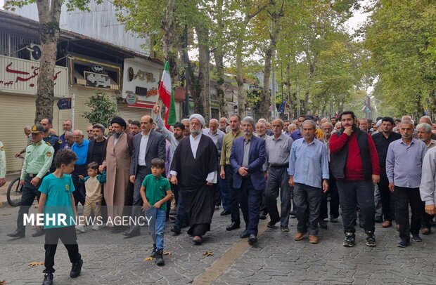 لاهیجان- مردم لاهیجان بعد از اقامه نماز جمعه به خیابان آمده و با شرکت در راهپیمایی «بشارت نصر» و به مناسبت دومین سالگرد طوفان الاقصی جنایات رژیم صهیونیستی را محکوم کردند.