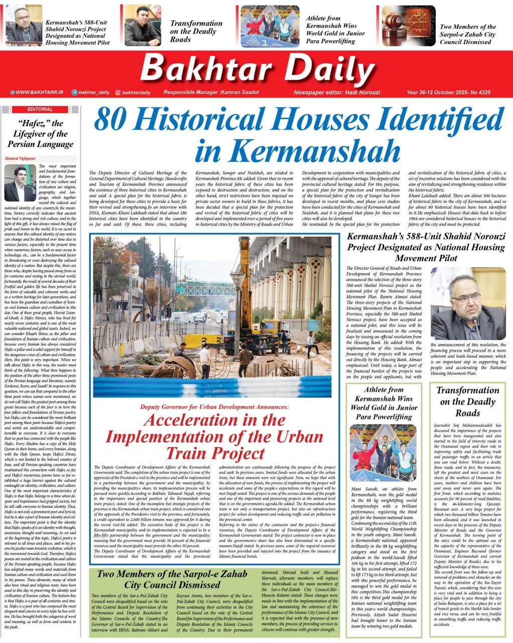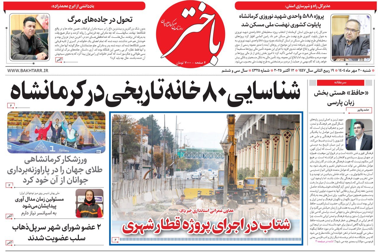 صفحه اول روزنامه‌های کرمانشاه یکشنبه ۲۰ مهرماه