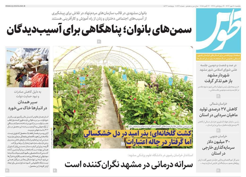 صفحه اول روزنامه های خراسان رضوی ۲۰ مهر ۱۴۰۴