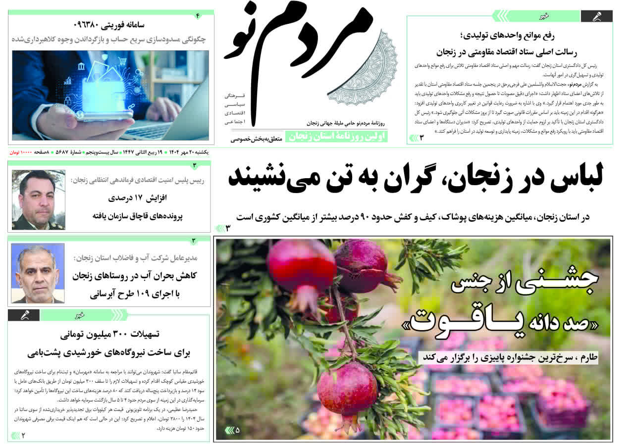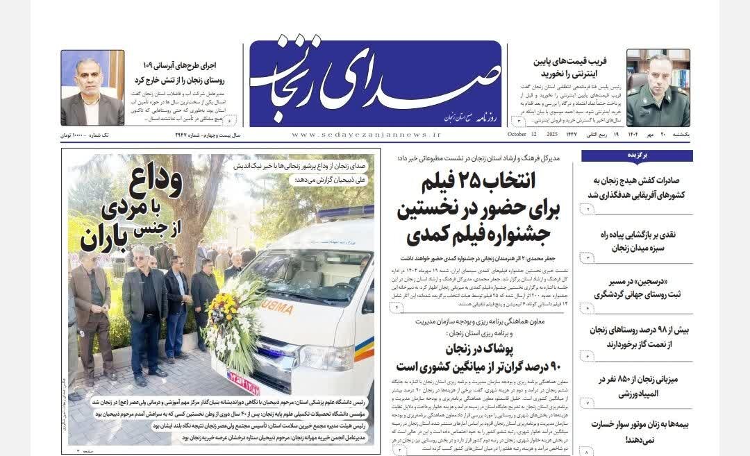 صفحه اول روزنامه های زنجان ۲۰ مهر ۱۴۰۴