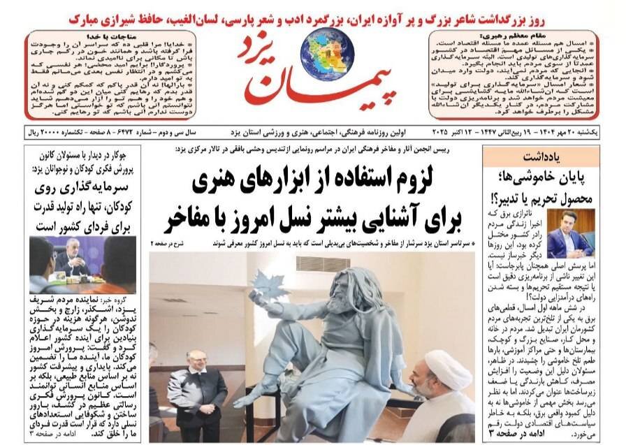 صفحه نخست روزنامه‌های یزد یکشنبه ۲۰ مهر