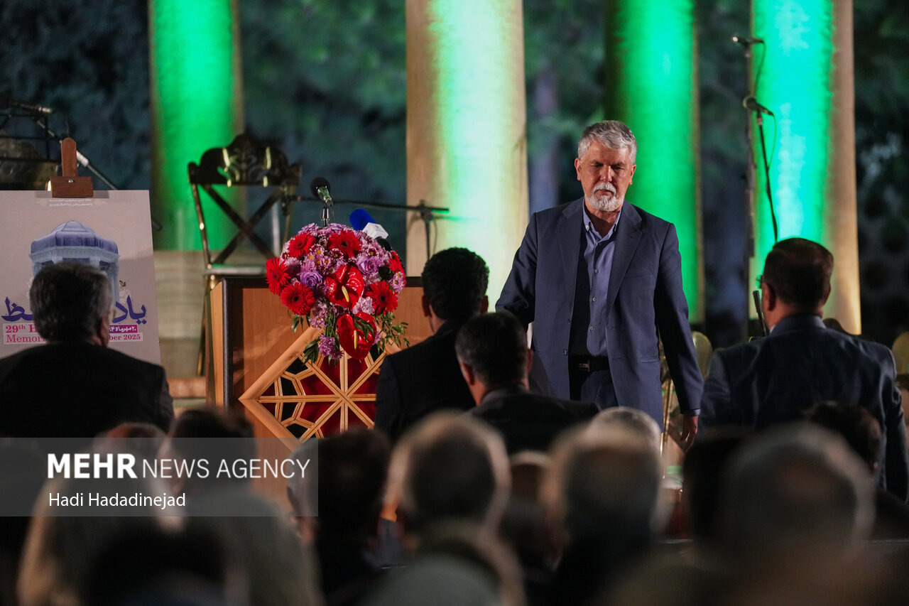 مراسم بزرگداشت یادروز حافظ شیرازی این غزلسرای بزرگ ادبیات ایران شامگاه شنبه ۱۹ مهرماه با حضور سیدعباس صالحی وزیر فرهنگ و ارشاد اسلامی، سید ستار هاشمی وزیر ارتباطات و فناوری اطلاعات، حسینعلی امیری استاندار فارس و مدیران استانی در آرمگاه حافظیه شیراز برگزار شد.