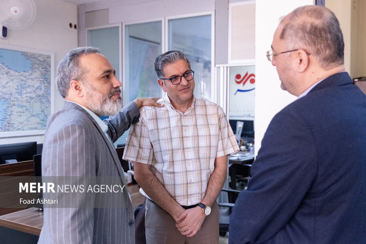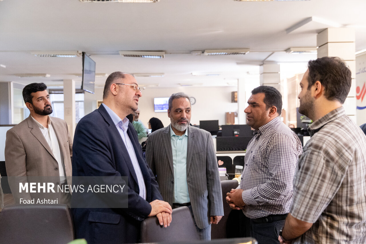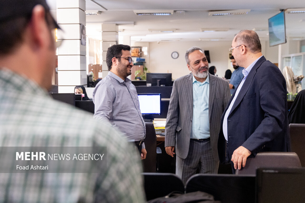 حسین قرایی رئیس روابط عمومی صدا و سیما در خبرگزاری مهر در خبرگزاری مهر حضور پیدا کرد و از تحریریههای این خبرگزاری بازدید کرد.