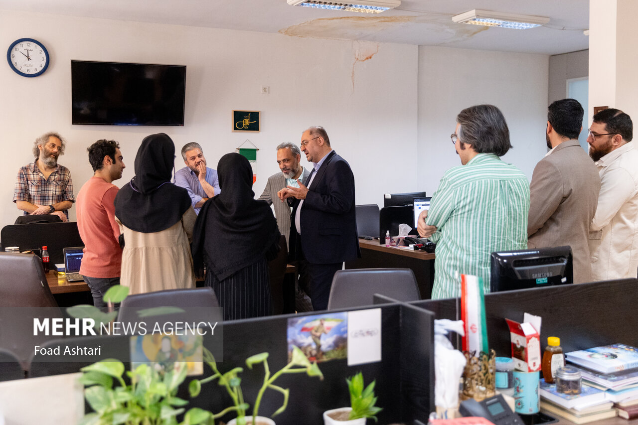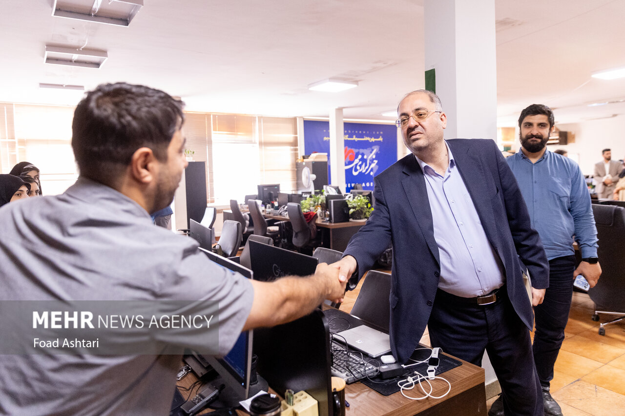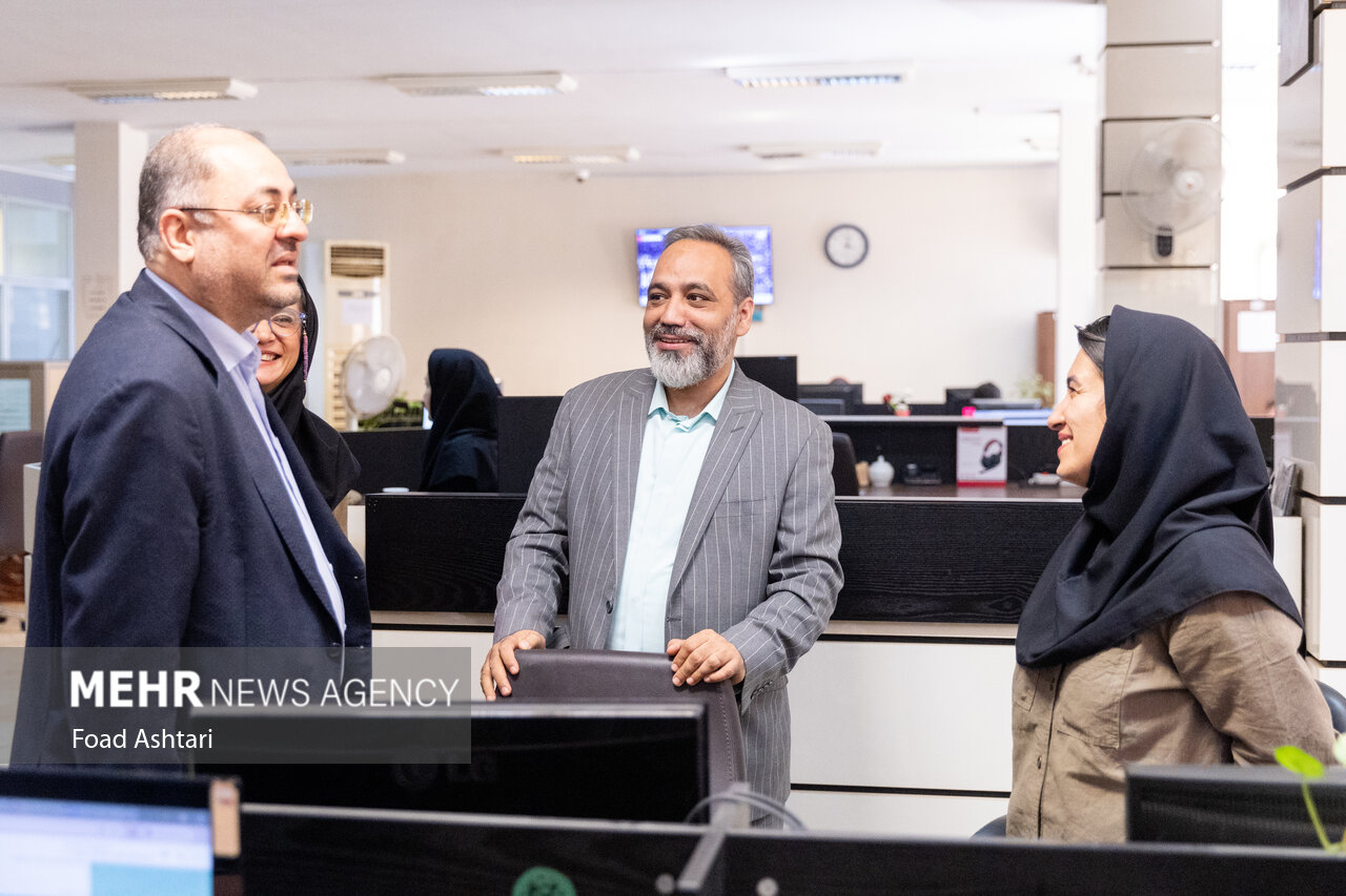 حسین قرایی رئیس روابط عمومی صدا و سیما در خبرگزاری مهر در خبرگزاری مهر حضور پیدا کرد و از تحریریههای این خبرگزاری بازدید کرد.