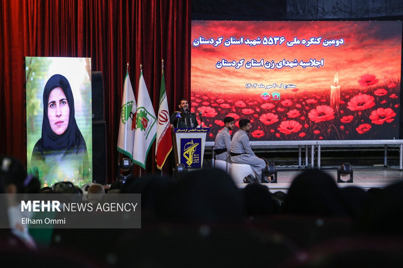 اجلاسیه شهدای زن کردستان از سلسله برنامههای دومین کنگره ملی ۵۵۳۶ شهید استان کردستان، روز یکشنبه ۲۰ مهر ۱۴۰۴ با حضور خانوادههای معظم شهدا، جمعی از بانوان ایثارگر، مسئولان کشوری و استانی و اقشار مختلف مردم در سالن امام خمینی(ره) سنندج برگزار شد.