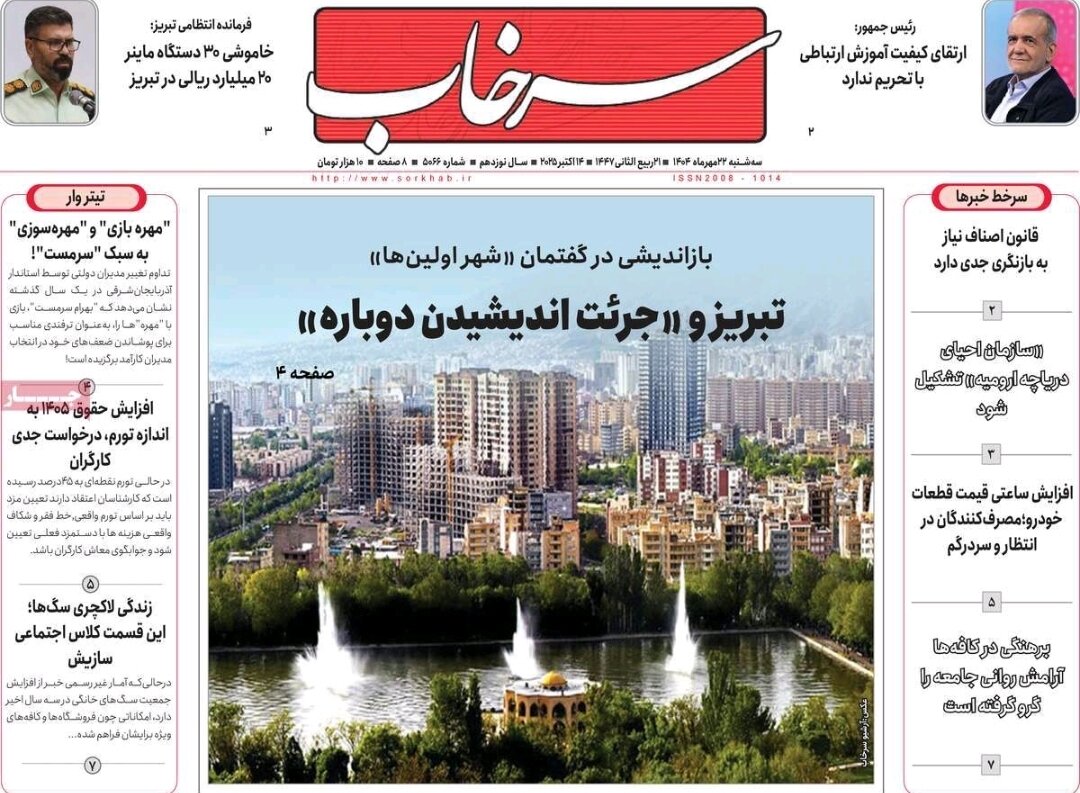 صفحه نخست روزنامه‌های آذربایجان شرقی ۲۲ مهر ۱۴۰۴