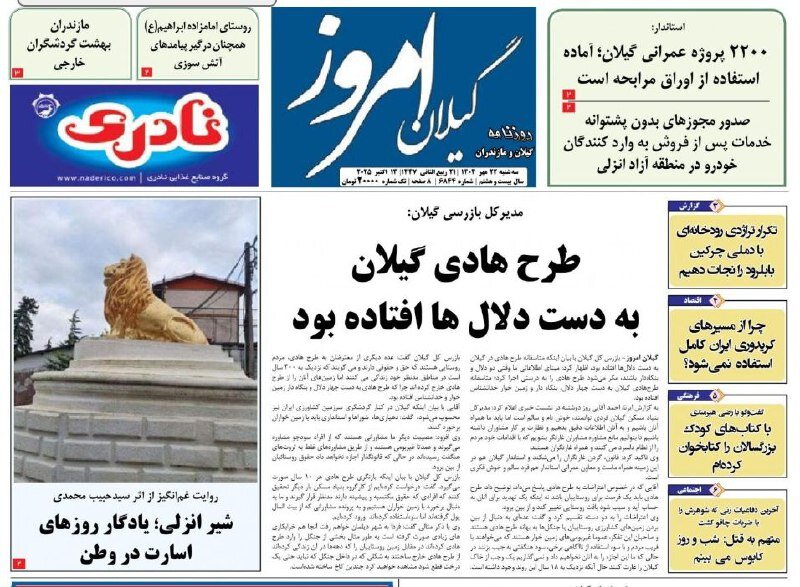 صفحه اول روزنامه های گیلان ۲۲ مهر ۱۴۰۴