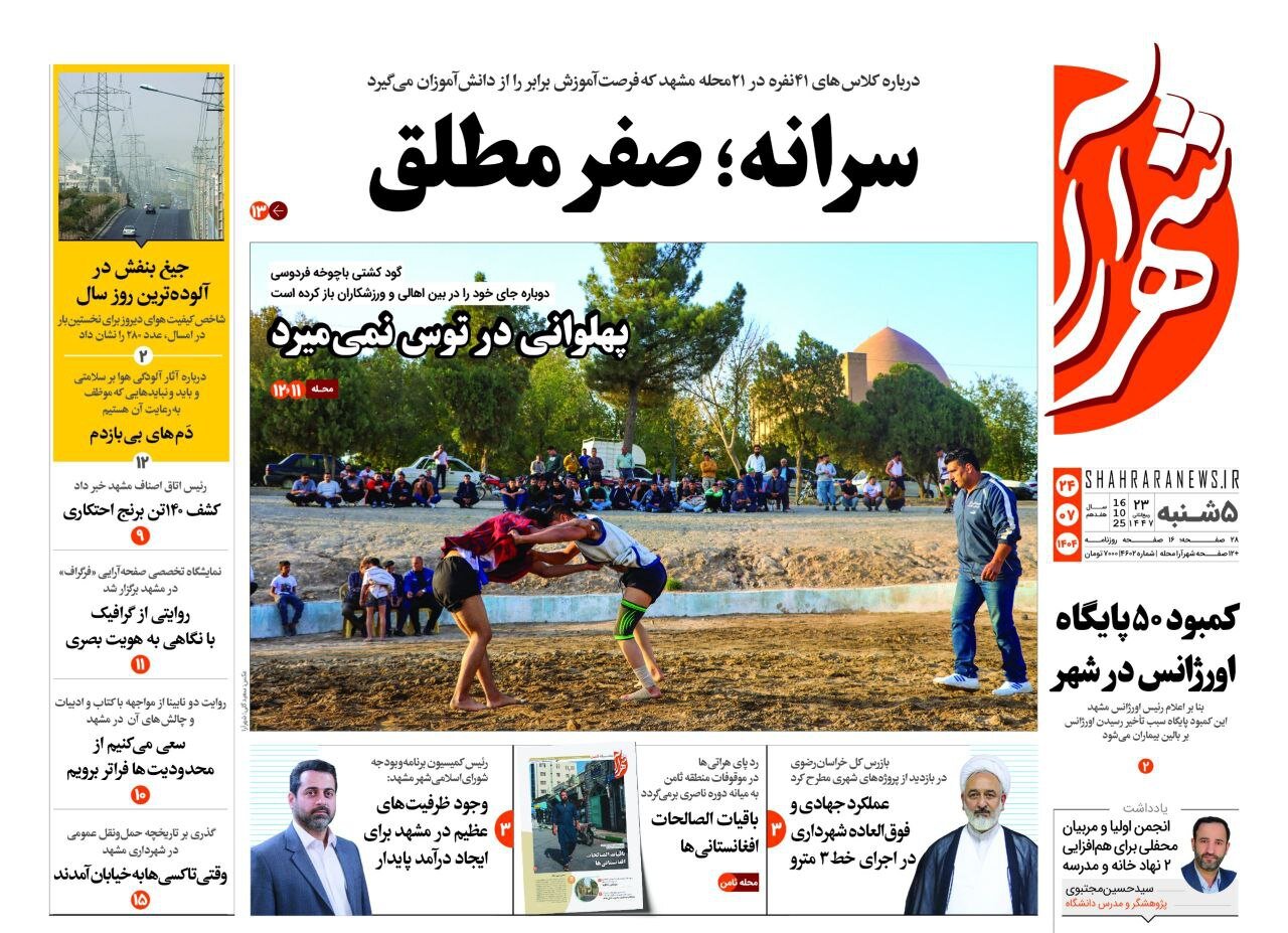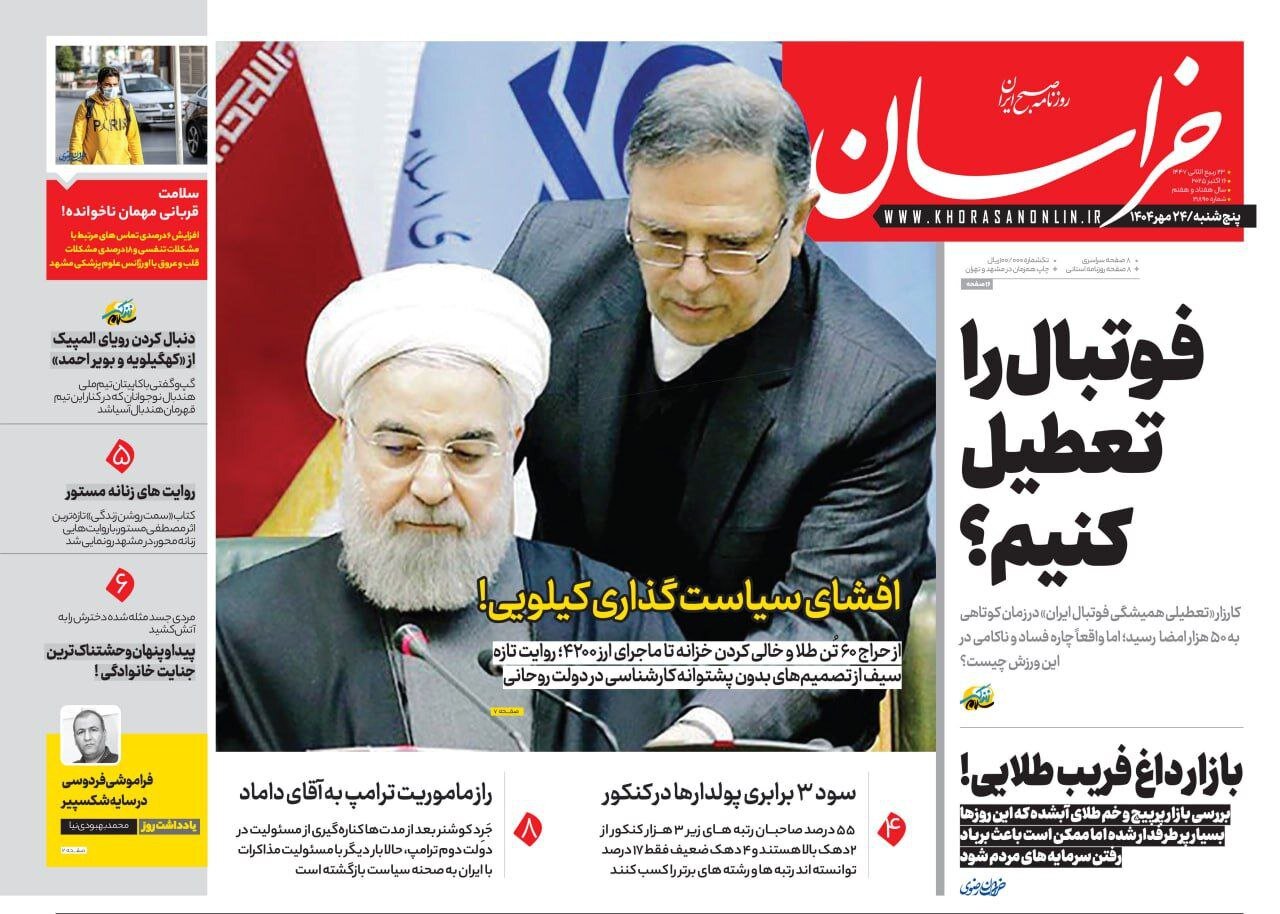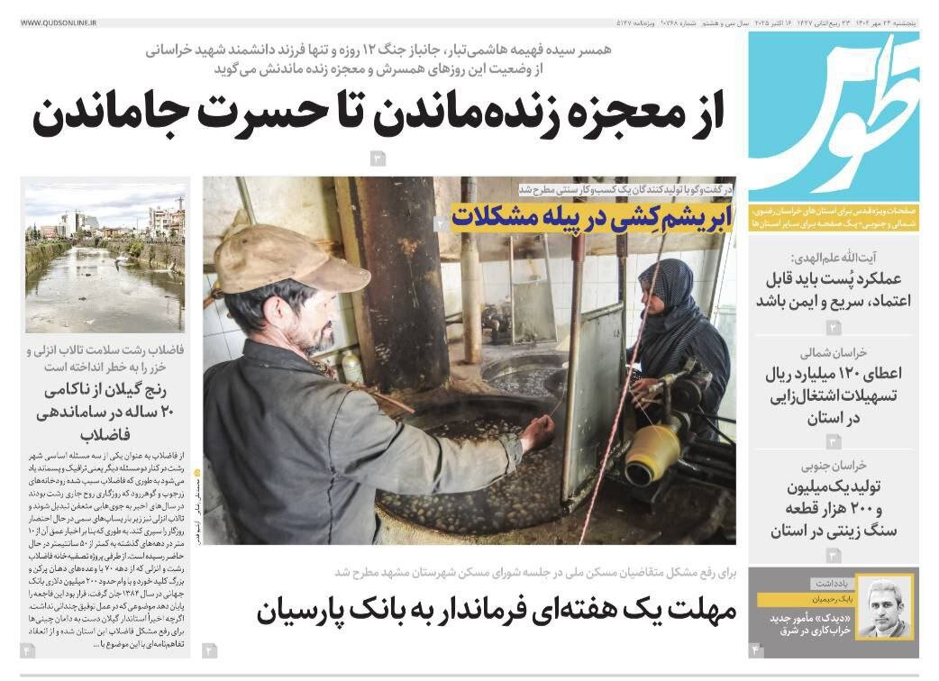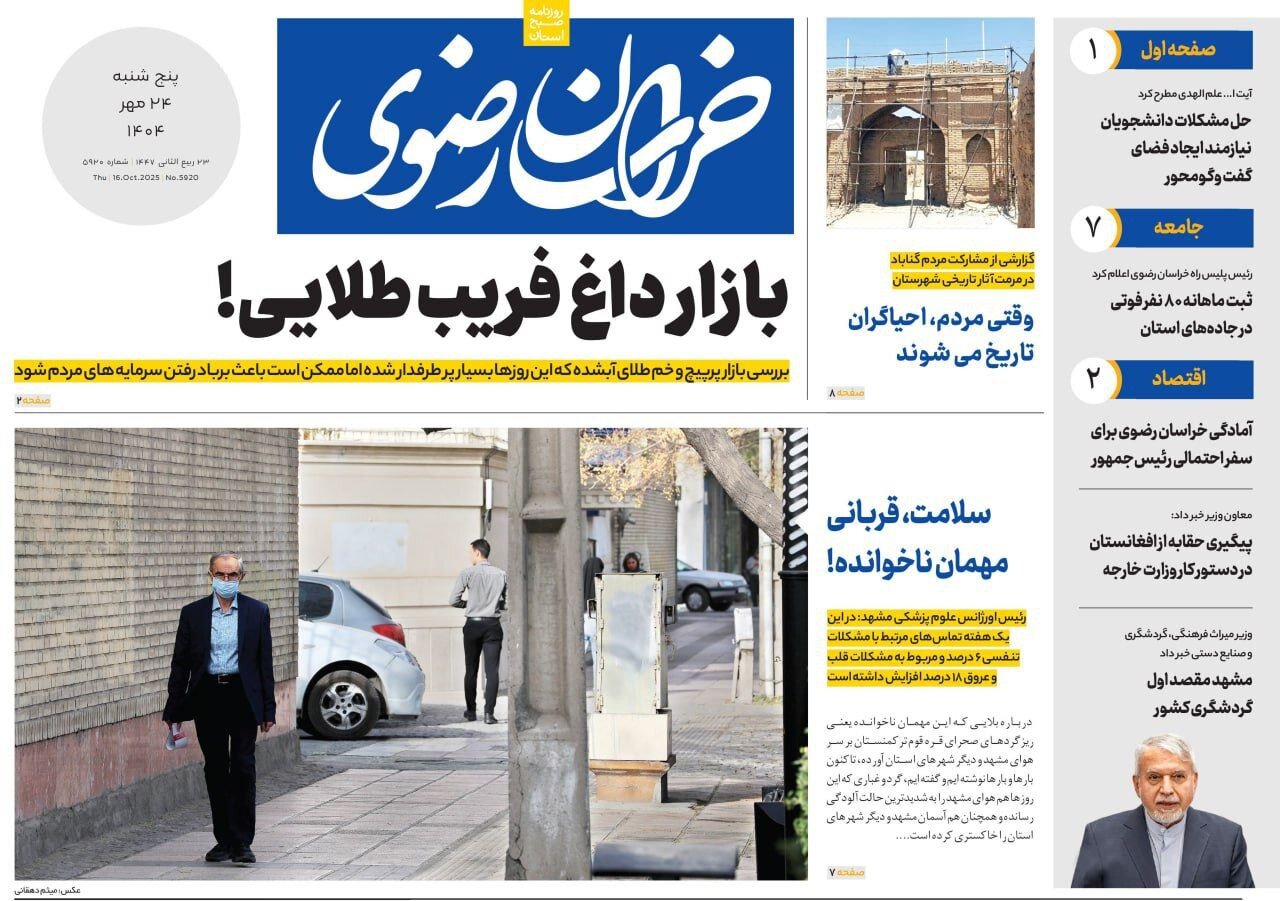 صفحه اول روزنامه های خراسان رضوی ۲۴ مهر ۱۴۰۴