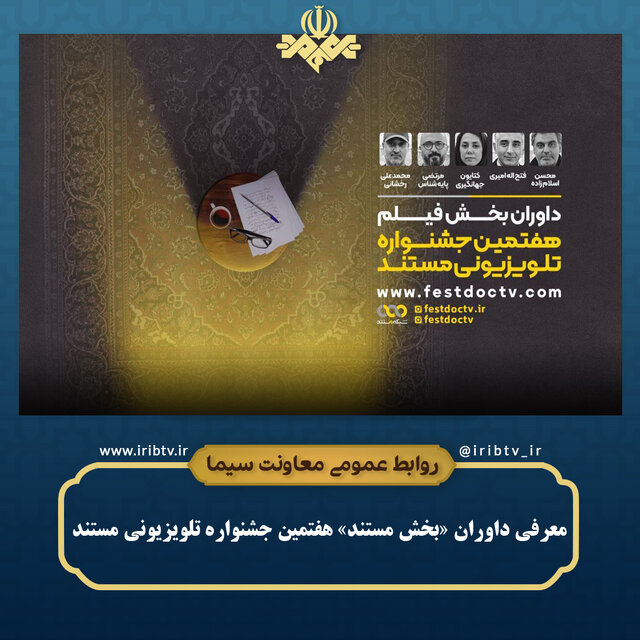 به گزارش ایسنا به نقل از پایگاه اطلاعرسانی سیما، فتح الله امیری، مرتضی پایه شناس، محسن اسلام زاده، محمدعلی رخشانی و کتایون جهانگیری به عنوان داوران بخش فیلم مستند هفتمین جشنواره تلویزیونی مستند معرفی شدند و آثار راه یافته به جشنواره در بخش های بلند، نیمه بلند و کوتاه را داوری خواهند کرد.