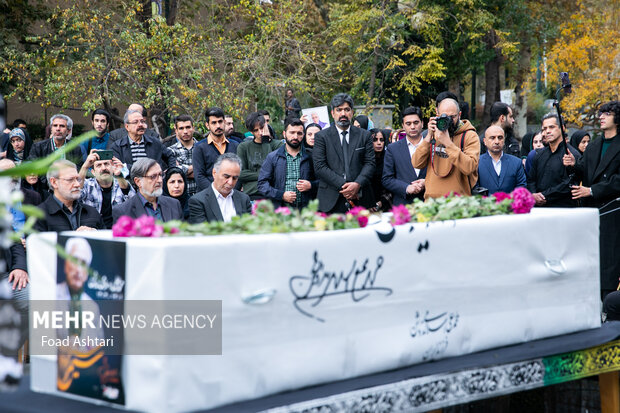 پیکر ایناستاد ادبیات، پس از برگزاری آئین تشییع به روزنامه اطلاعات منتقل شد تا مراسم اقامه نماز و بزرگداشت وی در این مؤسسه برگزار شود. این مراسم با حضور اساتید حوزه ادبیات، فرهنگ و هنر همراه است.