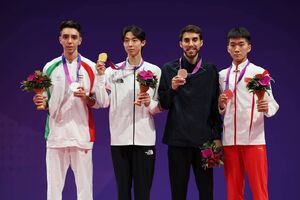 تصاویری از اهدای مدال برنز به مبینا نعمتزاده و مدال نقره به مهدی حاجیموسایی ملیپوشان تکواندو را ببینید.